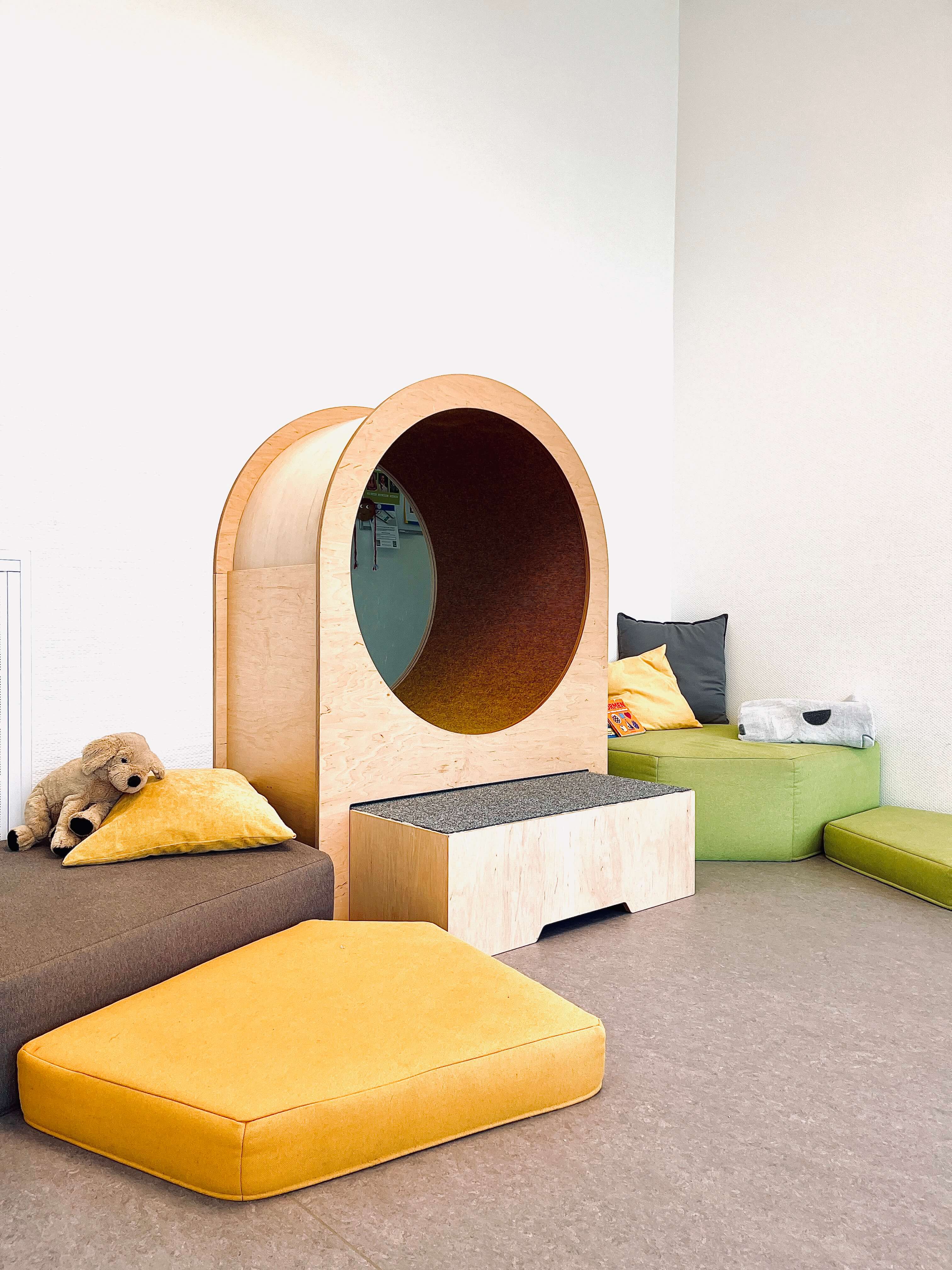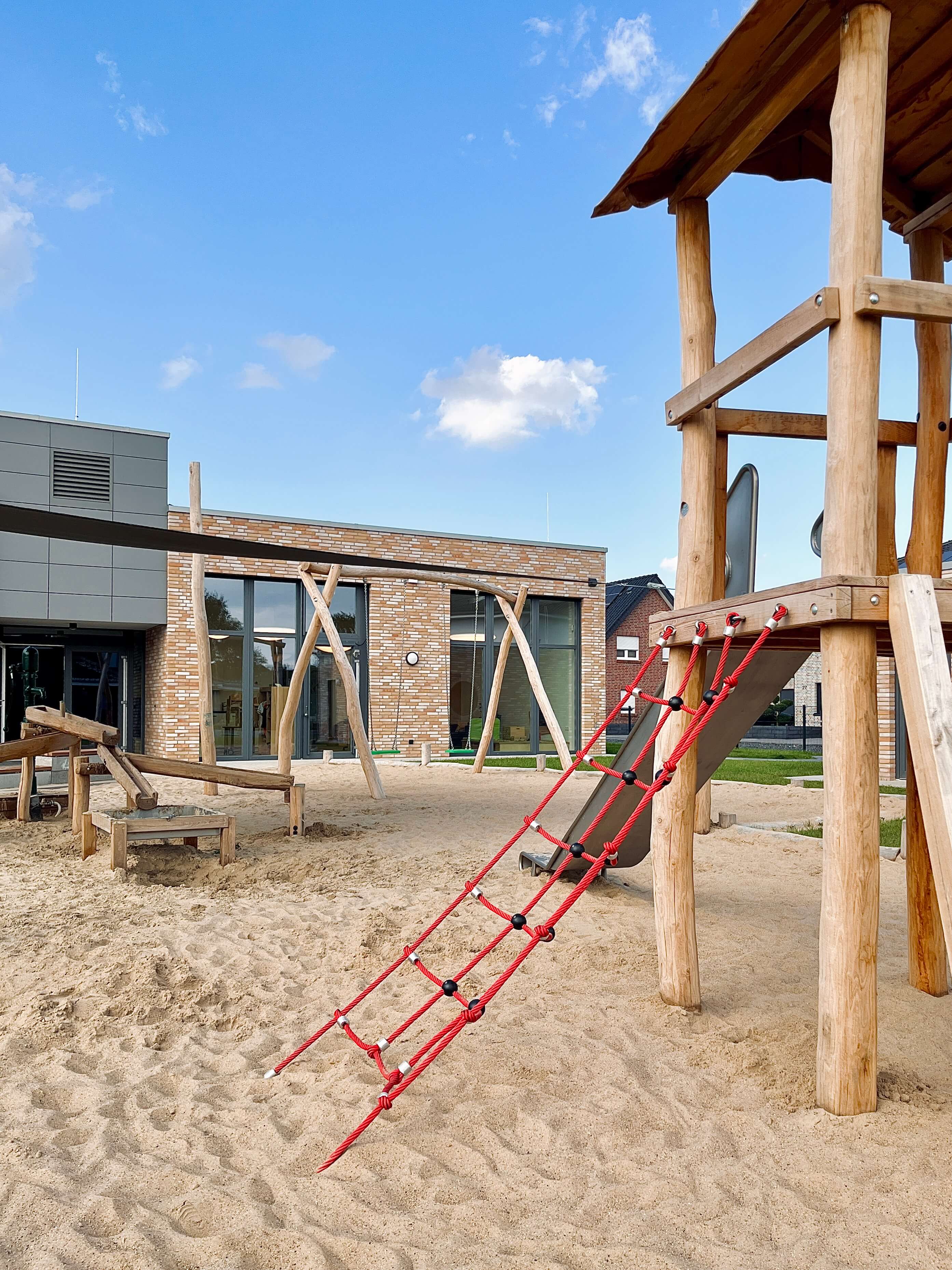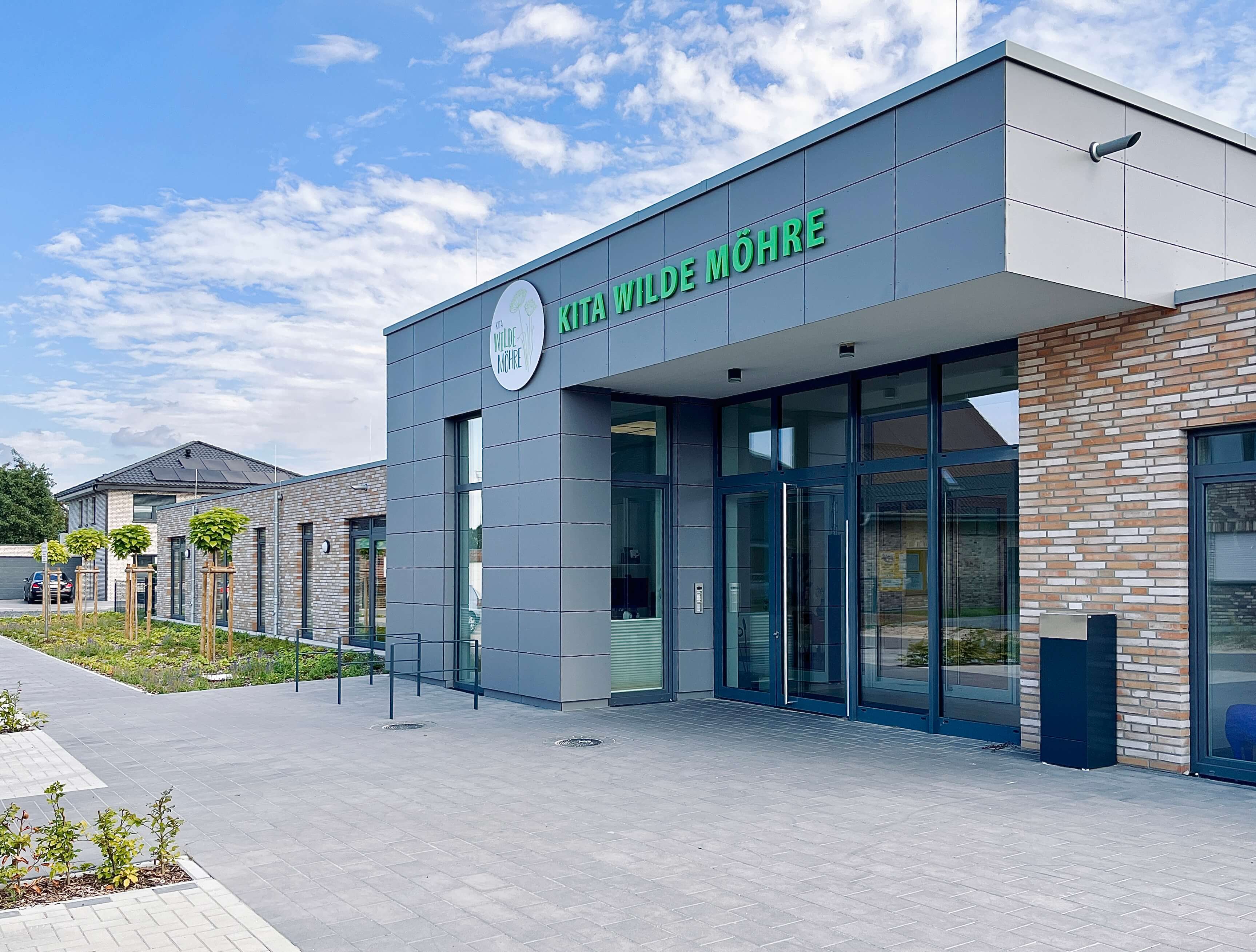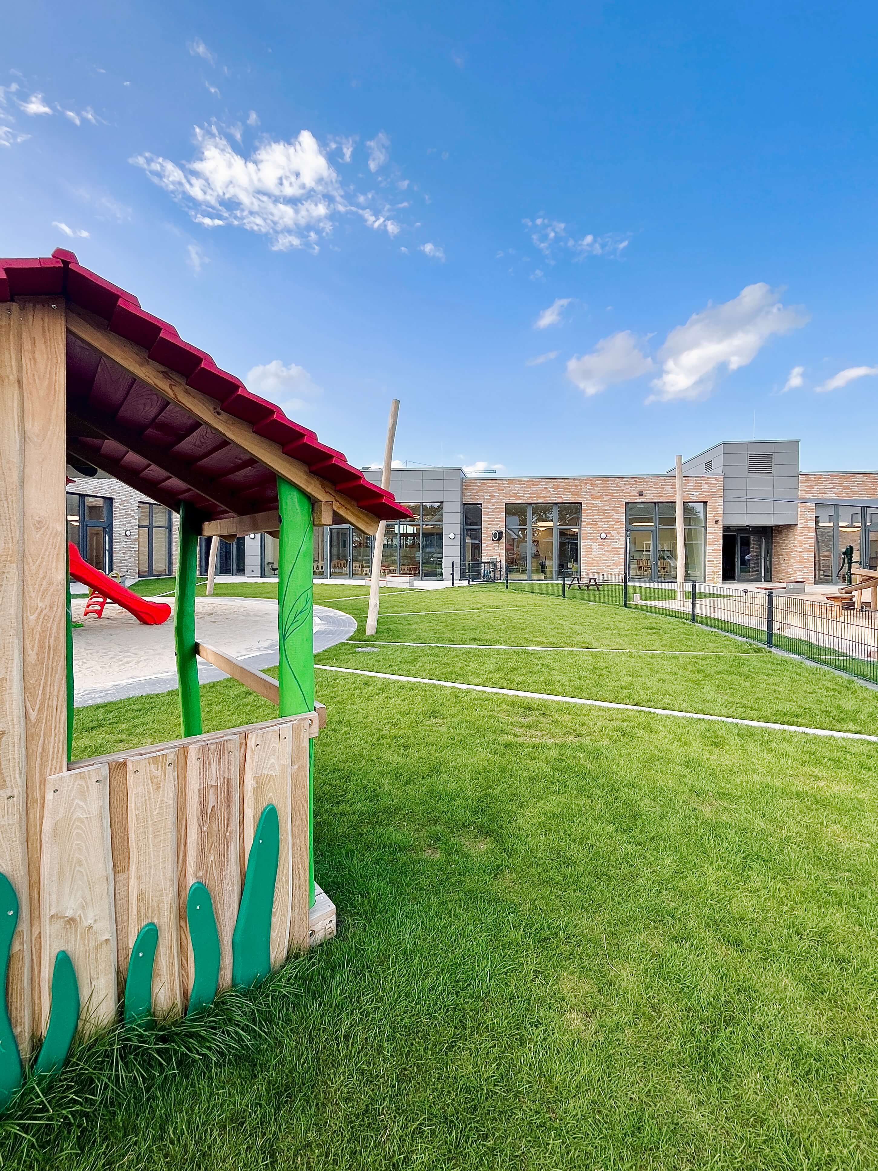 Im Laufe der Planungen wurden aus den ursprünglich nur 3 geplanten Gruppen dann insgesamt 5. Es sollten sowohl 3 Krippengruppen als auch 2 Regelgruppen entstehen. Somit ist innerhalb von 17 Monaten ein modernes, funktionales und zukunftsweisendes Gebäude mit 1.150 qm Nutzfläche entstanden.