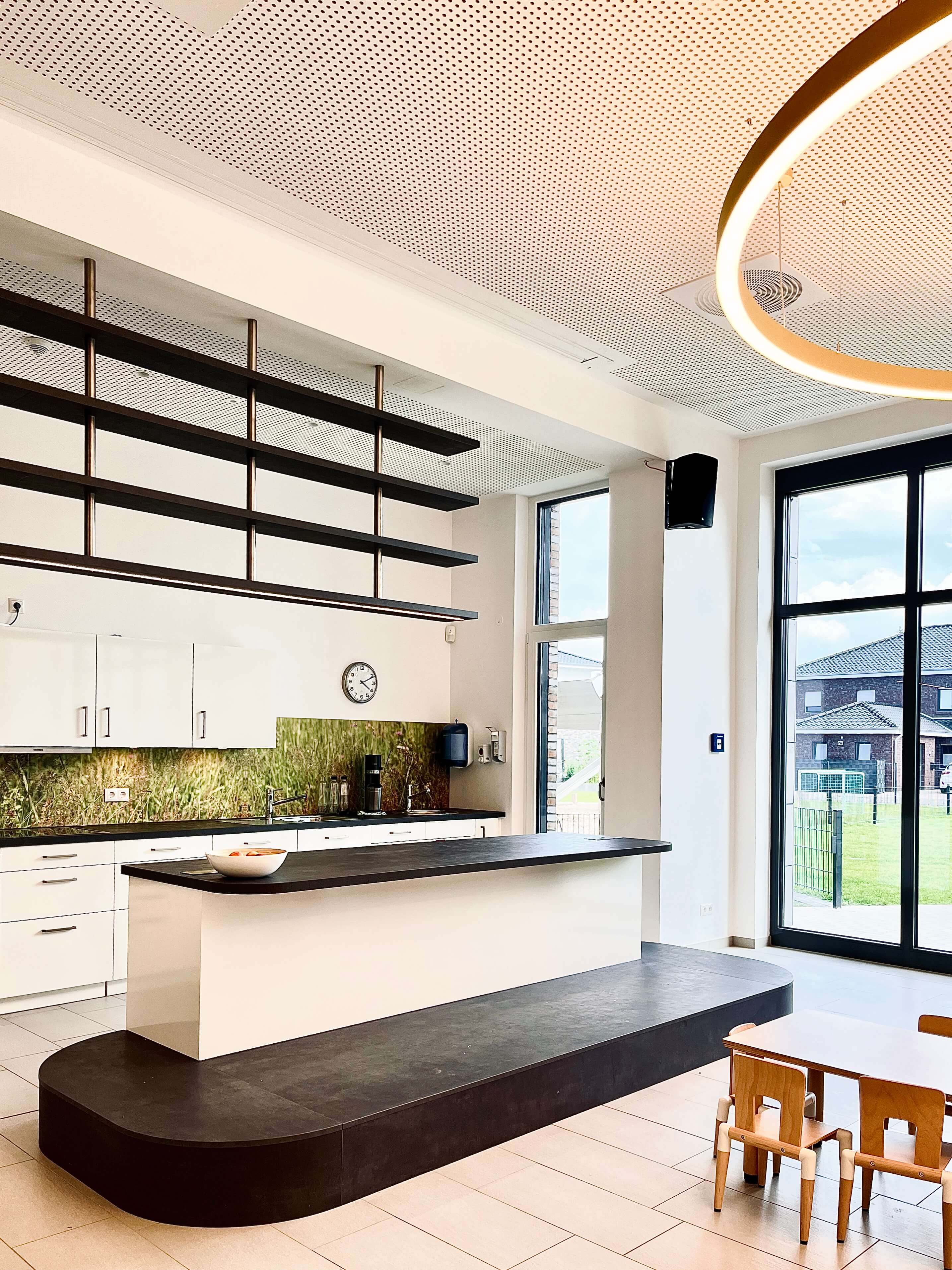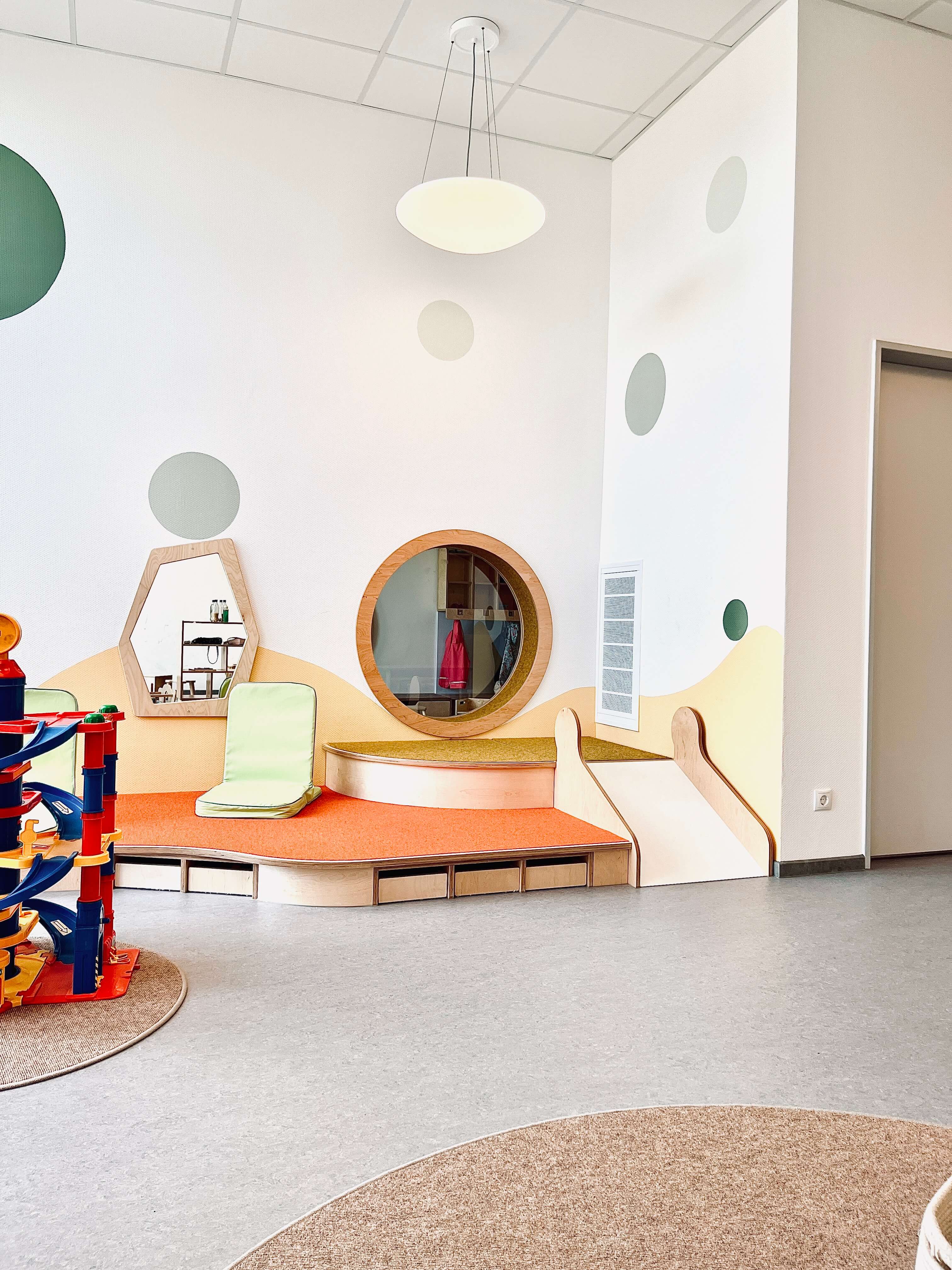 Energetisch auf dem neusten Stand wird die Kita über Geothermie beheizt und eine Photovoltaikanlage deckt den Eigenbedarf an Strom. Die kontrollierte Be- und Entlüftungsanlage sorgt für ein gutes Raumklima.