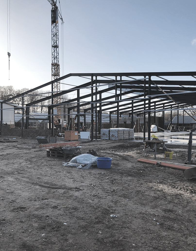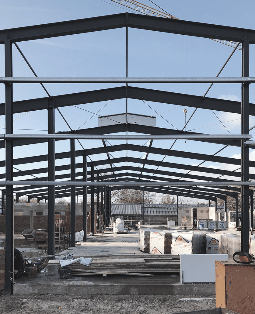Bei dem Neubau der Tischlerhalle für das Christophorus-Werk in Lingen geht es mit großen Schritten voran. Das Stahlgerüst der Halle steht und die Maurerarbeiten sind im vollen Gange. Wenn die Halle fertiggestellt ist, wird sie vom Christophorus-Werk für die Ausbildung der Tischler verwendet.